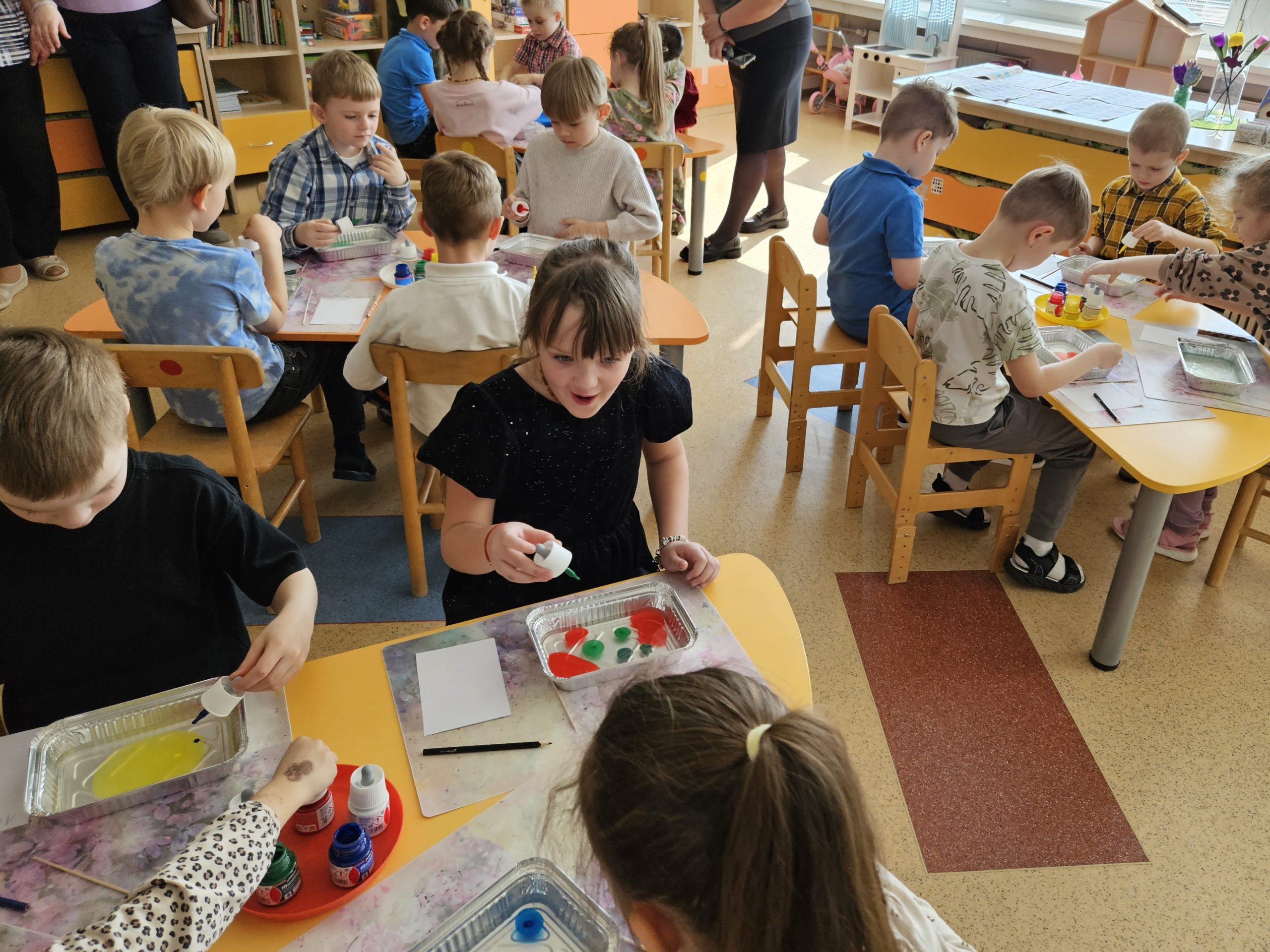 Vėliau dalyviams buvo pristatytos gyvos ugdymo veiklų akimirkos, suteikusios mokytojams galimybę tiesiogiai stebėti meninės veiklos integravimą į kasdienį ugdymo procesą, pasisemti naujų idėjų, metodinių sumanymų bei įkvėpimo savo pedagoginei veiklai.