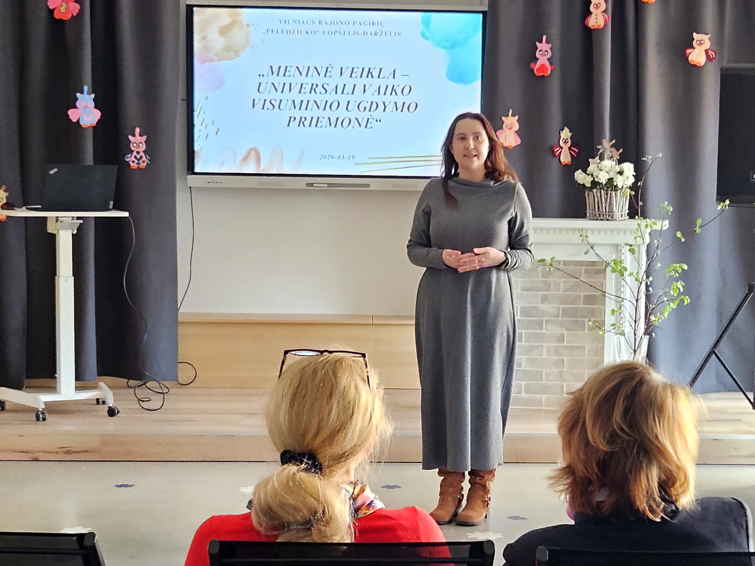 2026 m. kovo 19 d. Vilniaus rajono Pagirių „Pelėdžiuko“ lopšelyje-darželyje vyko Vilniaus rajono ikimokyklinio ir priešmokyklinio ugdymo mokytojams skirta metodinė praktinė diena „Meninė veikla – universali vaiko visuminio ugdymo priemonė“.